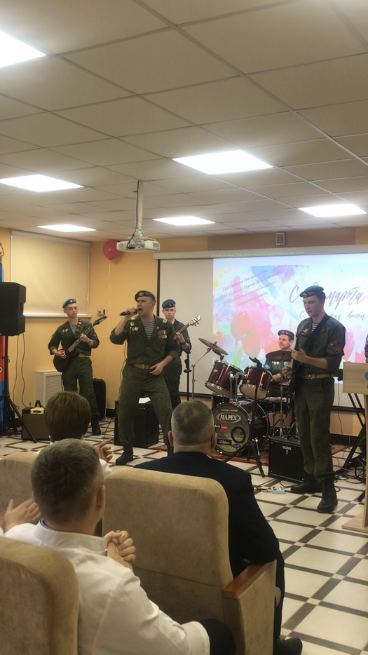 Военнослужащие 38-й отдельной гвардейской десантно-штурмовой Венской Краснознаменной бригады и их музыкальный ансамбль «Орлы над Бугом» организовали праздничный концерт для коллектива женщин Брестской детской областной больницы, приуроченный ко Дню 8 Марта. Мероприятие прошло в теплой атмосфере и стало ярким проявлением уважения и признательности медицинских специалистов, работающих в одной из ведущих детских больниц региона. Ребята подготовили специальную программу, включающую музыкальные выступления, красивые стихи и теплые пожелания здоровья, счастья и благополучия.